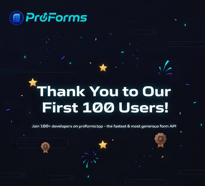 🚀 Proforms has officially reached 100+ active users — and we couldn’t be more excited! Over the past 4 months, Proforms has been serving creators, businesses, and developers, helping them design and manage smart, efficient forms effortlessly.
